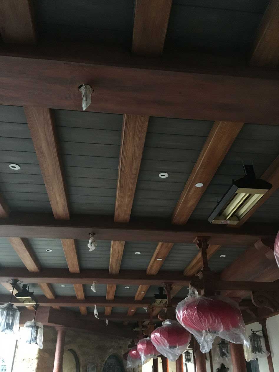 舟可工作室参与了上海迪斯尼漫月轩的彩绘工程,漫月轩是全球迪士尼**中国元素建筑。建筑内运用大量的玻璃钢翻模与水泥雕刻所制作的物体(包括天花板、大梁小梁、屋脊、屋檐椽子、各种质感的墙面、柱子、门头等等)都需要根据不同的主题来上色 达到以假乱真的效果。
