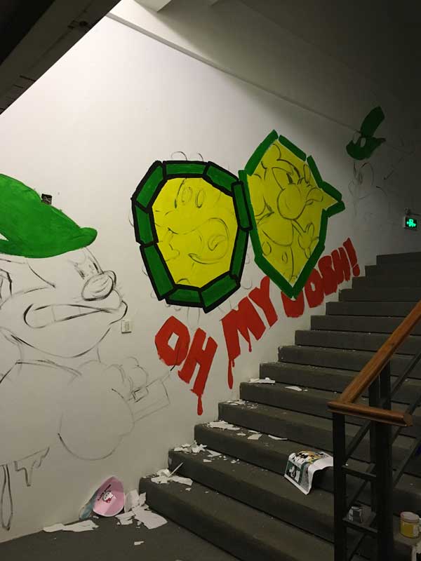 无锡贝贝帕克工厂店展厅楼道即兴涂鸦